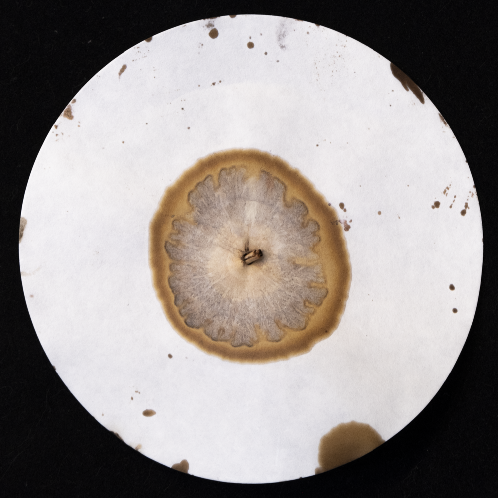 From October 5 – November 15, 2025, Elgin’s story and original chromatograms are on display in the windows of the North Austin Branch of the Chicago Public Library as part of the Terrain Biennial. During this time, Elgin’s pieces will finish developing from the lighter colors in the above pictures to prints with more depth and detail.